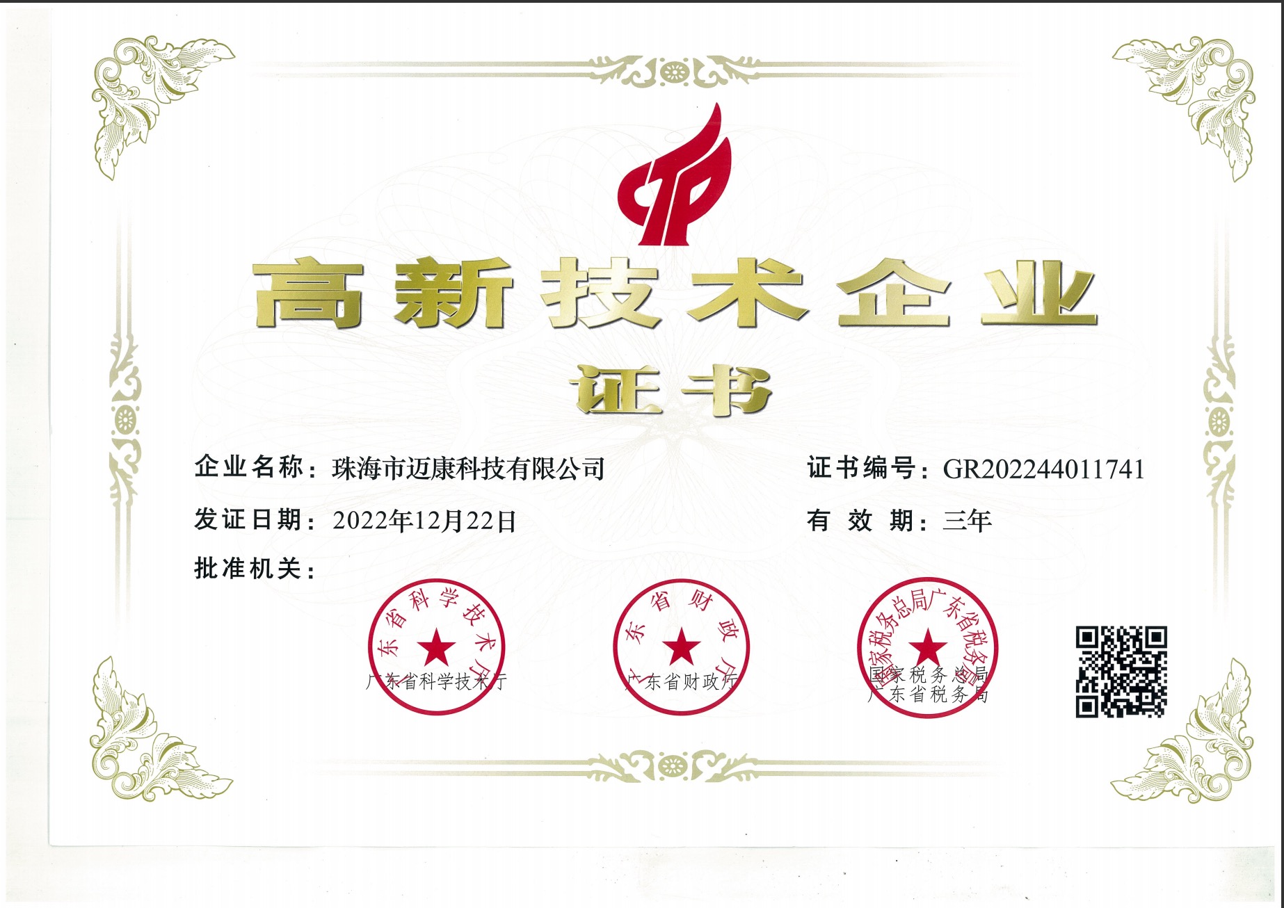 2022年12月22日,世界杯压球官网_世界杯(中国)通过高新技术企业认定